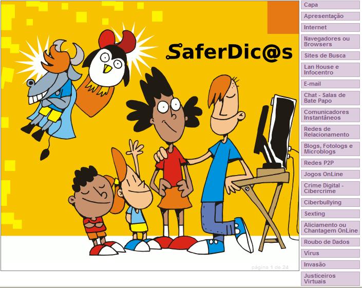 O uso da internet se espalha no país e coloca todo mundo diante de serviços novos e de perigos novos. Exatamente pra alertar as pessoas pra esses perigos e pra fazê-las aproveitar melhor os serviços da internet foi criada uma cartilha que pode ajudar crianças e adolescentes. A versão que circula na internet é para crianças, pais e professores. As dicas aparecem em forma de jogos, brincadeiras e histórias em quadrinhos. A principal é: não informe dados pessoais, como endereço ou telefone. Outra recomendação é não responder a ameaças e provocações. Se souber de alguém que esteja sendo intimidado, avise um adulto em quem confie. Você pode explorar o site https://www.safernet.org.br/site/prevencao/cartilha/safer-dicas SaferNet